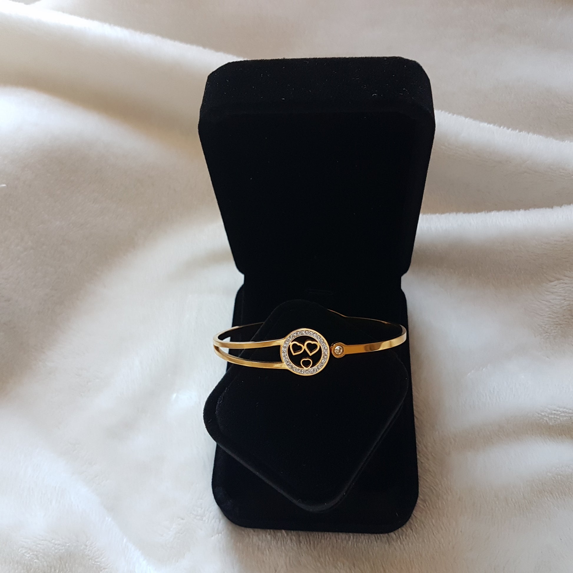 Un éclat d'amour enveloppe votre poignet avec le Bracelet "Petits Cœurs".Trois délicats cœurs sont encerclés d'un halo scintillant de strass d'un côté,tandis qu'un strass solitaire étincelle de l'autre.