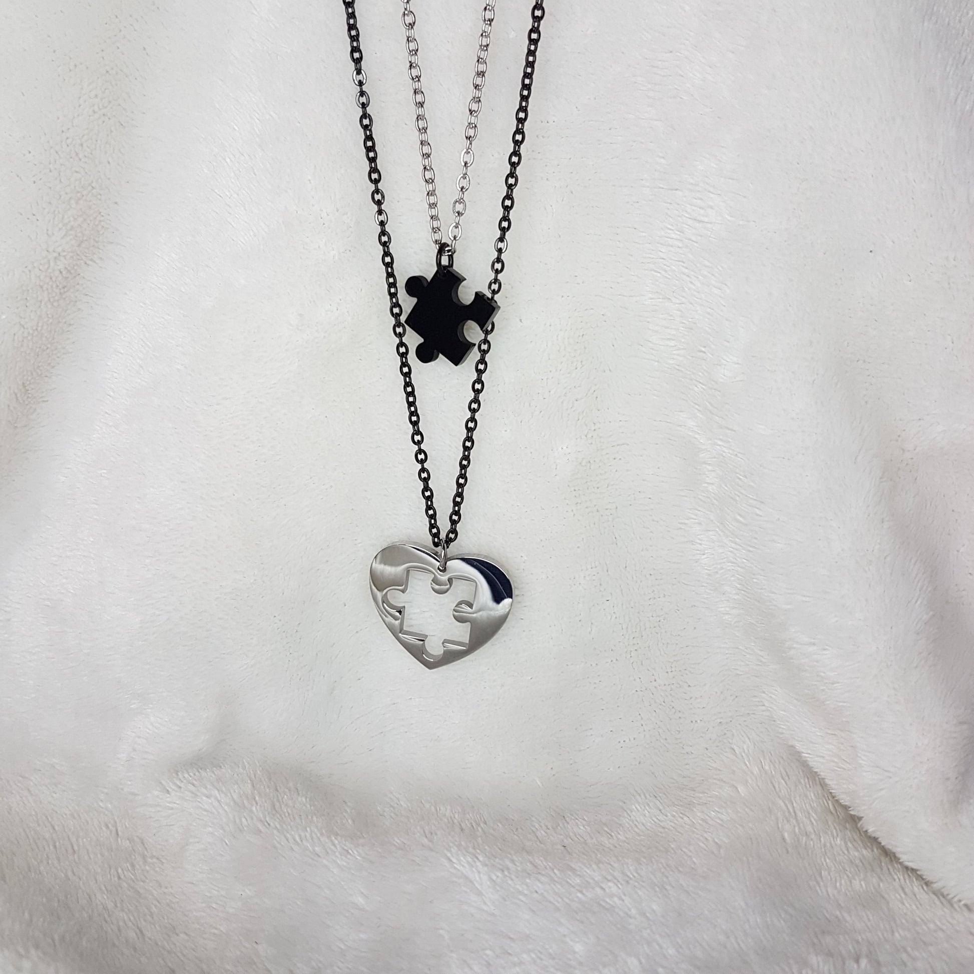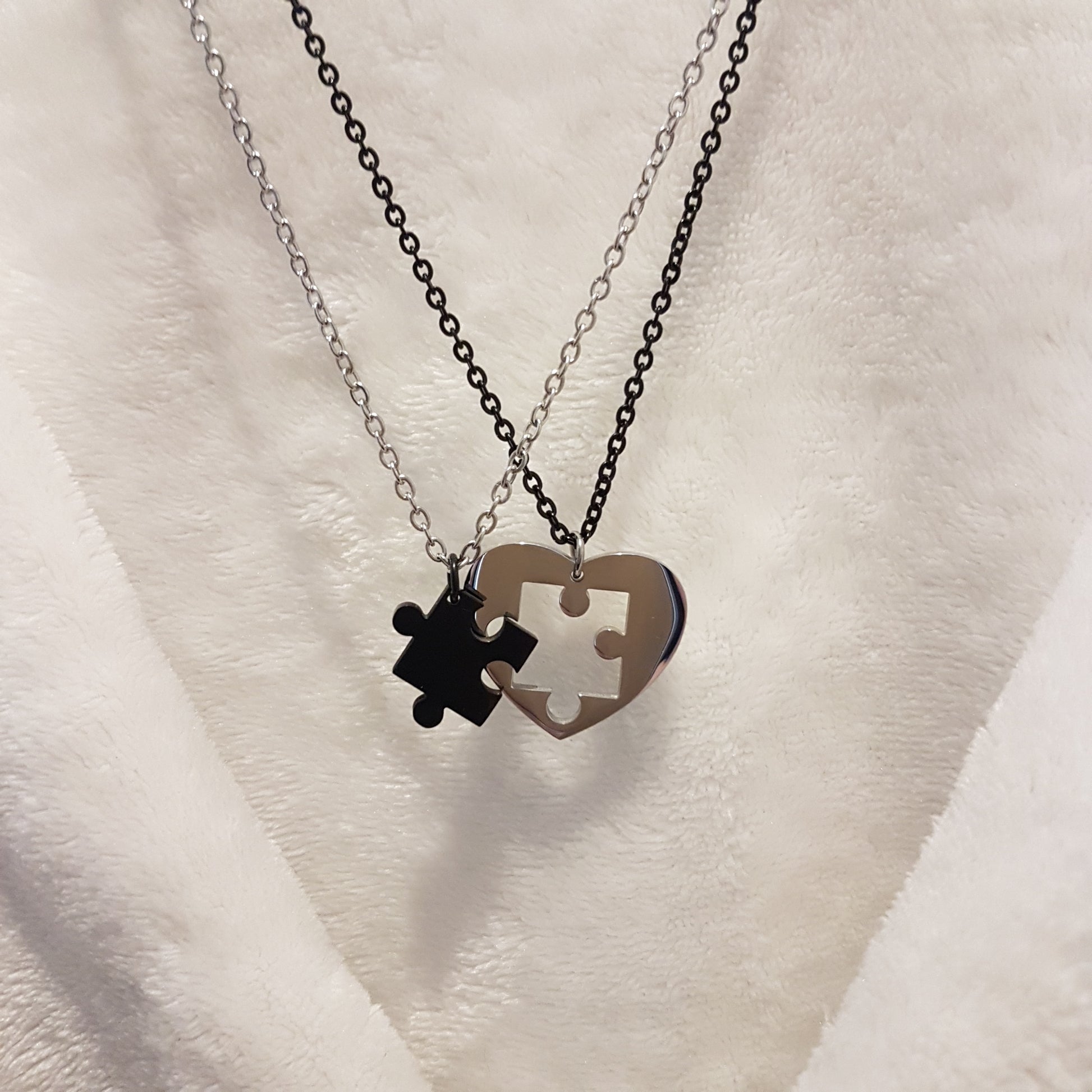 L'ensemble collier "puzzle pour 2", une expression visuelle de l'amour partagé. Ces deux pièces symbolisent l'union indissoluble, créant ensemble une pièce intemporelle qui évoque la connexion profonde et la complicité dans le langage universel de l'amour .